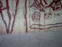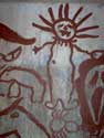 Beim Bemalen einer Betonwand in einer Unterführung in Bregenz haben Kinder spontan vor allem Grundformen der Bildsprache verwendet. Es finden sich Grätefiguren, Kreise, konzentrische Kreise, Strahlen u.a.m.