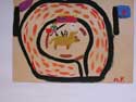 Im Freien Malen sind diese 8.Klässler teilweise auf die Entwicklungsstufe von 6-7 jährigen Kindern zurückgefallen. Interessanterweise fühlten sie sich dabei sehr wohl und hatten keine Hemmungen.