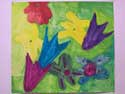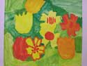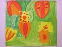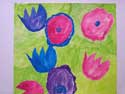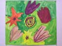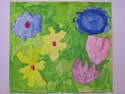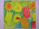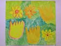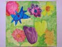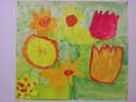 Ausgangslage einer häufigen Aufgabenstellung in der Primarschule ist nicht nur die Vorgabe eines bestimmten Themas. Bei diesen Blumenbildern einer Mittelstufenklasse wurden zusätzlich Blumenschablonen angefertigt, ein einheitliches Aufbaukonzept eingeführt sowie eine begrenzte Farbauswahl zur Verfügung gestellt. Da kann wenig schief gehen. Die "kleine Freiheit" zeigt sich in der Blumenmitte: Kreis gefüllt, konzentrische Kreise, Zentrum, Spiralen etc.