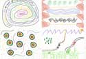 In dieser Klasse wurde über ein Jahr jeden Morgen während 20 Minuten eine Geschichte vorgelesen und zeitgleich kritzelten und zeichneten die Oberstufenschüler auf eine Postkarte. Von den mehreren hundert Karten ist eine kleine Auswahl von 2 Knaben und 1 Mädchen in der Bildgalerie zu sehen.