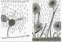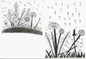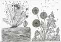 Die "Postkarten-Schüler" haben einiges nachgeholt und sich eine grafische Fertigkeit angeeignet. Nach einer kurzen Betrachtung eines Löwenzahns hat jeder Jugendliche mit Sicherheit und Hingabe die Aufgabe individuell gelöst.