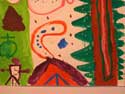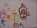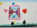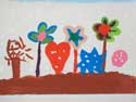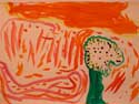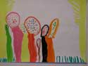 Ein Flüchtlingskind aus dem Kosovo, trat in den Kindergarten ein ohne Deutschkenntnisse. Es hat weder Farbstift noch Pinsel gekannt. Die Galerie zeigt Bilder von den ersten zaghaften Strichversuchen über Häuser, Bäume, Menschen. Als letztes Bild vor seinem Schuleintritt zeichnete es eine strahlende Blume.