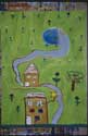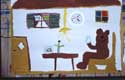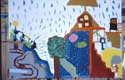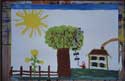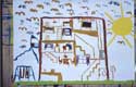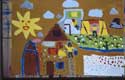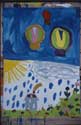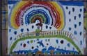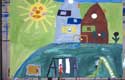 Dieses Mädchen ist eine stille und zurückhaltende Schülerin einer 1. Klasse, mit bescheidenen Schulleistungen. Im integrierten Malatelier ließ sie sich auch in einer unruhigeren Gruppe nie aus der Ruhe bringen und malte von Anfang an mit großer Konzentration ihre dichten Bilder. Allmählich taute sie auf und konnte sich in der Pause energisch wehren.