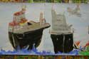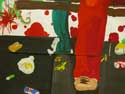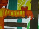 Diese Bilder zeigen Stationen eines Knaben zwischen dem 10. und 14. Altersjahr. Landschaften, Seeschlachten und Stillleben wurden abgelöst von Graffiti. Diese großflächigen Farbbilder "pieces" und die individuellen Schriftzüge "tags" beschäftigten ihn über längere Zeit, dabei hat er rund 80 Bilder fortlaufend aneinandergereiht (40 Laufmeter). In der Galerie sind davon 4 Beispiele zu sehen: das erste, das 36., das 69. und letzte Schrift-Graffiti. Dann tauchten Gesichter und übergroße Personen auf. Die Farben mussten genau abgestimmt gemischt werden. Das räumliche Vorstellungsvermögen wird auch bei diesem Malstil immer differenzierter.